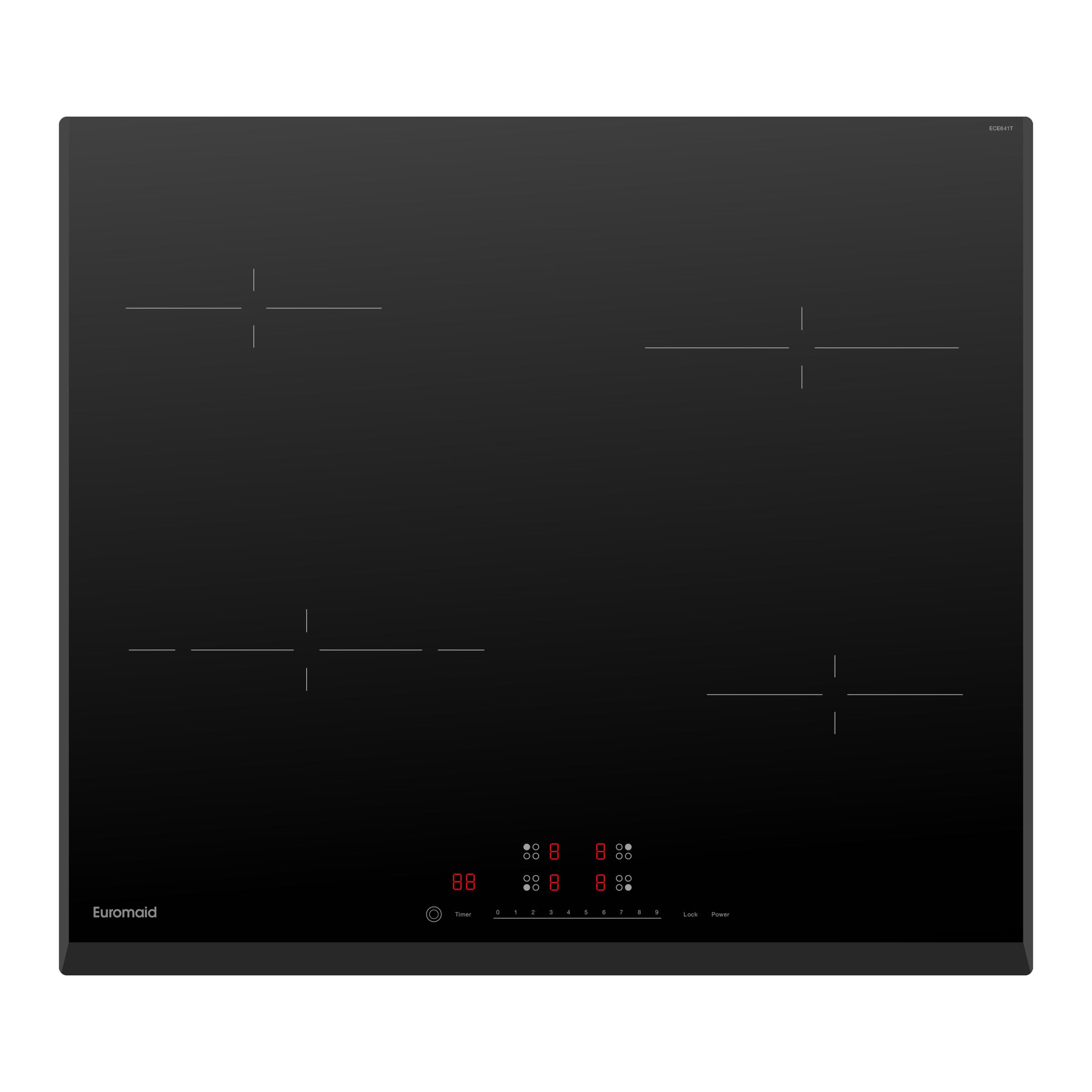4 ZONE CERAMIC COOKTOP, 9 POWER LEVELS, HOT SURFACE INDICATORS, ON/OFF KEY, AUTOMATIC SAFETY SWITCH-OFF, KNOB CONTROLS, BEVELLED SIDE & FRONT EDGES