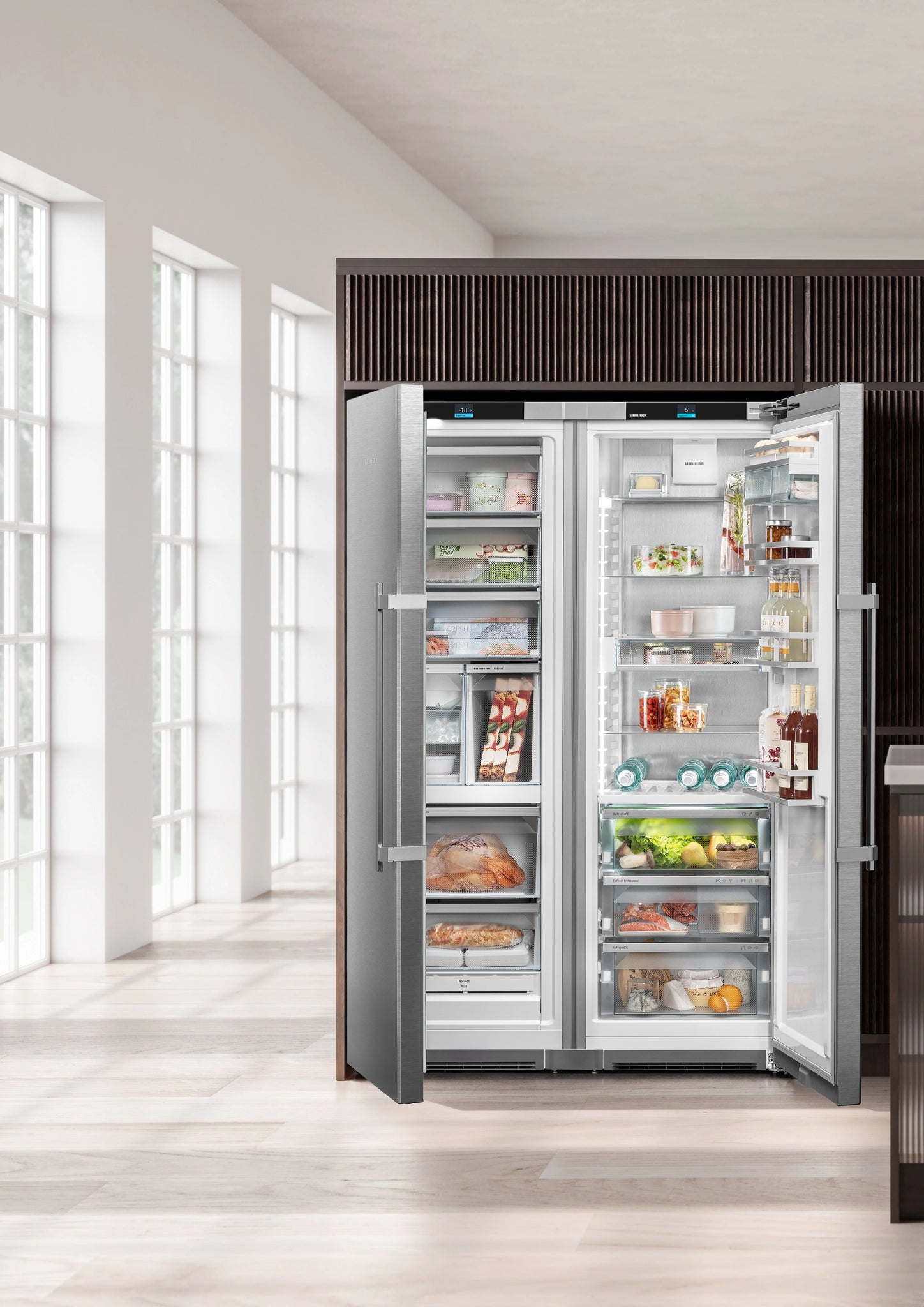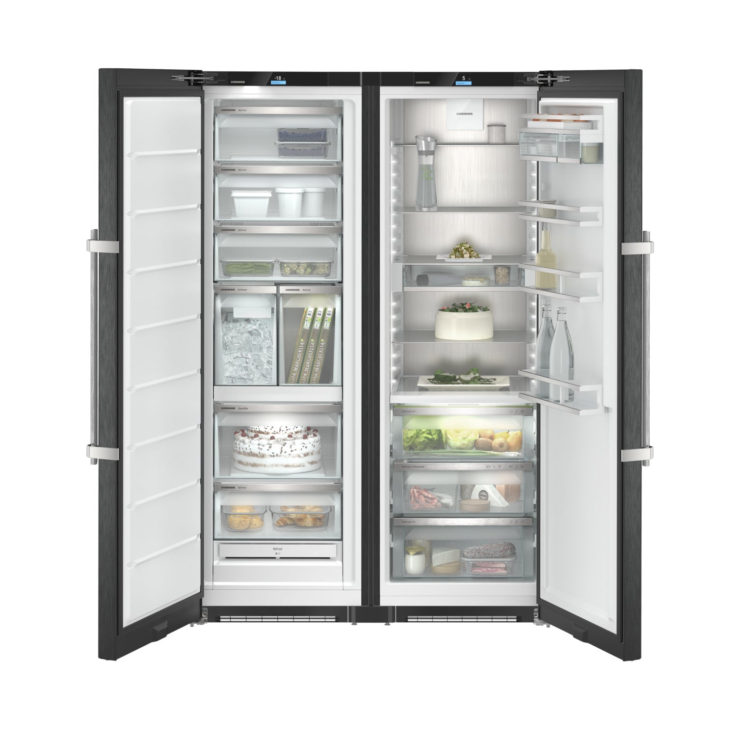 Biofresh long life food storage, DuoCooling, NoFrost, Touch display, EasyOpen doors, Plumbed automatic ice maker, Black Steel finish, 661L Capacity