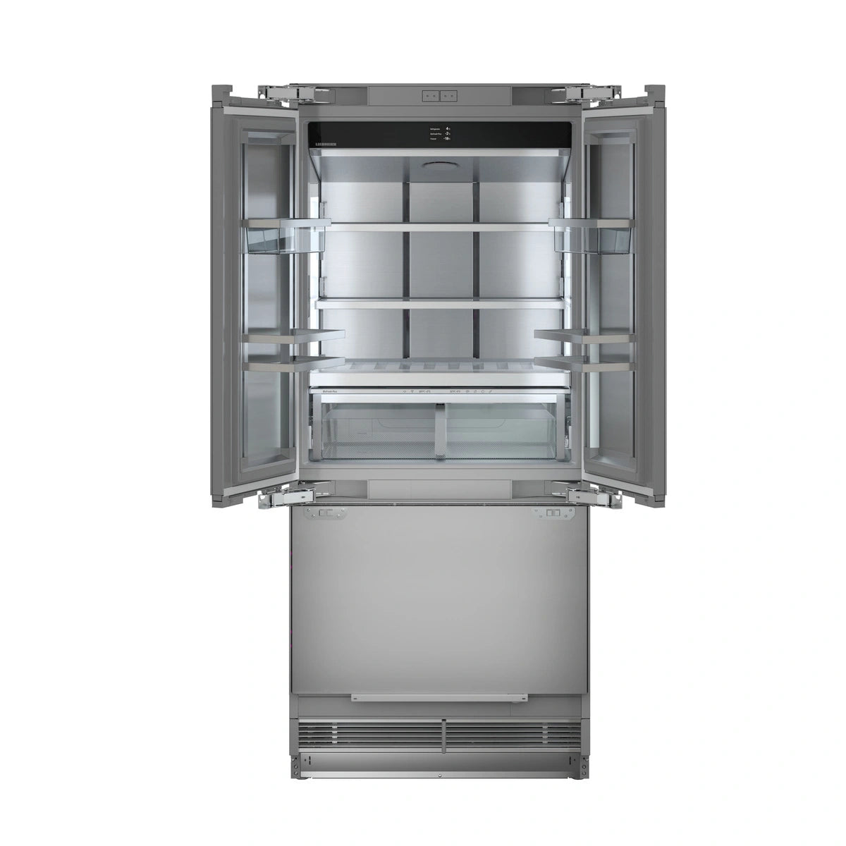 BioFresh-Plus- The BioFresh Plus Safe guarantees you a perfect storage climate and extra-long freshness of fruit and vegetables, meat and dairy products as well as fish and seafood – all in just one compartment. Depending on the food, the Meat & Dairy safe can be divided into various temperature zones from just over 0 °C (32 °F) to an icy -2 °C (28 °F). IceMaker-Monolith’s automatic IceMaker produces 1.6 kg (3.5 pounds) of filtered ice in 24 hours. Activate the SuperFrost function for an even greater production capability. With a 1.8 kg (4-pound) storage capacity, you’ll never be without. DuoCooling-DuoCooling technology uses two completely separate refrigeration circuits to prevent air from being exchanged between the fridge and freezer compartments. This protects food in the refrigerator compartment from dry air from the freezer compartment. Also, odours do not mingle and the foods retain their own aroma. There is no air exchange between the fridge and freezer compartments, odour transfer is prevented and stored food does not dry out. InfinitySpring- The seamlessly integrated, flush-mounted InfinitySpring internal water dispenser is there when you need it, and virtually invisible when you don’t, and can accommodate pitchers of any size. Liebherr’s filtration system eliminates harmful contaminates, resulting in crisp, clear, fresh tasting water. SuperSilent-Shhh – listen carefully. Your Liebherr is so quiet that you have to strain your ears to hear it. How is this achieved? All refrigeration components such as compressors, valves, fans and evaporators are optimised and perfectly adapted to one another. This means you only hear what you want to hear in your kitchen. PowerCooling- The high-performance PowerCooling system from Liebherr ensures that freshly stored groceries are cooled quickly and that the cooling temperature is evenly distributed throughout the interior. In the Monolith, cold air can also circulate behind the door so that food stored in the door stays just as cold as it does in the interior. InfinityLight- Monolith’s seamlessly integrated LED side-wall lighting casts a beautiful and even glow that can be adjusted according to taste, including a soft brightening effect upon opening the doors, and a pleasing night dimming feature. InfinityLight doesn’t just add drama and flair, it also emits less heat, preserving food quality.